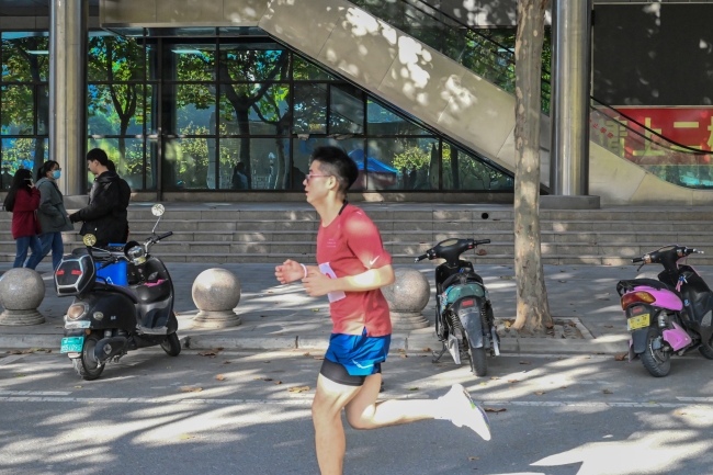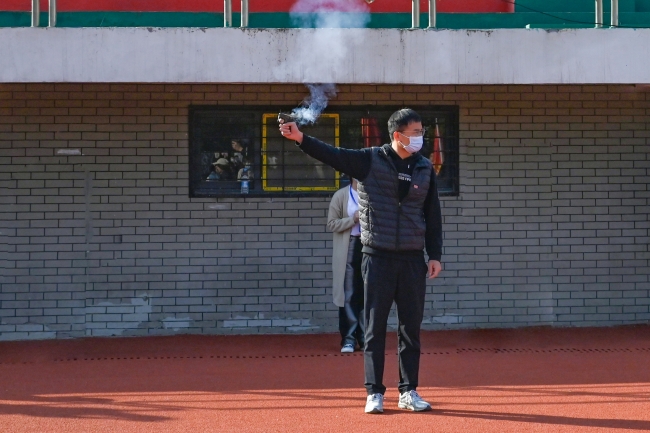 赛前,参赛选手佩戴好号码牌,熟悉比赛规则,按照分配站位有序站定。随着一声枪响,参赛选手以昂扬拼搏的姿态冲出跑道。赛道上,参赛选手严格遵守比赛规则,奔跑在冬日的校园中,沿途观众挥舞双臂为其呐喊助威,现场气氛十分热烈。