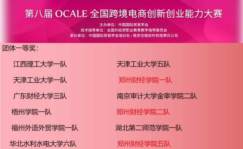 11月18日,由中国国际贸易学会主办的第八届OCALE全国跨境电商创新创业能力大赛(秋季)圆满结束。beat365管理学院选派的6支代表队与来自全国136所本科高校的640支队伍同场竞技,历经3天的激烈角逐,最终脱颖而出,荣获3个团体一等奖,3个团体二等奖。