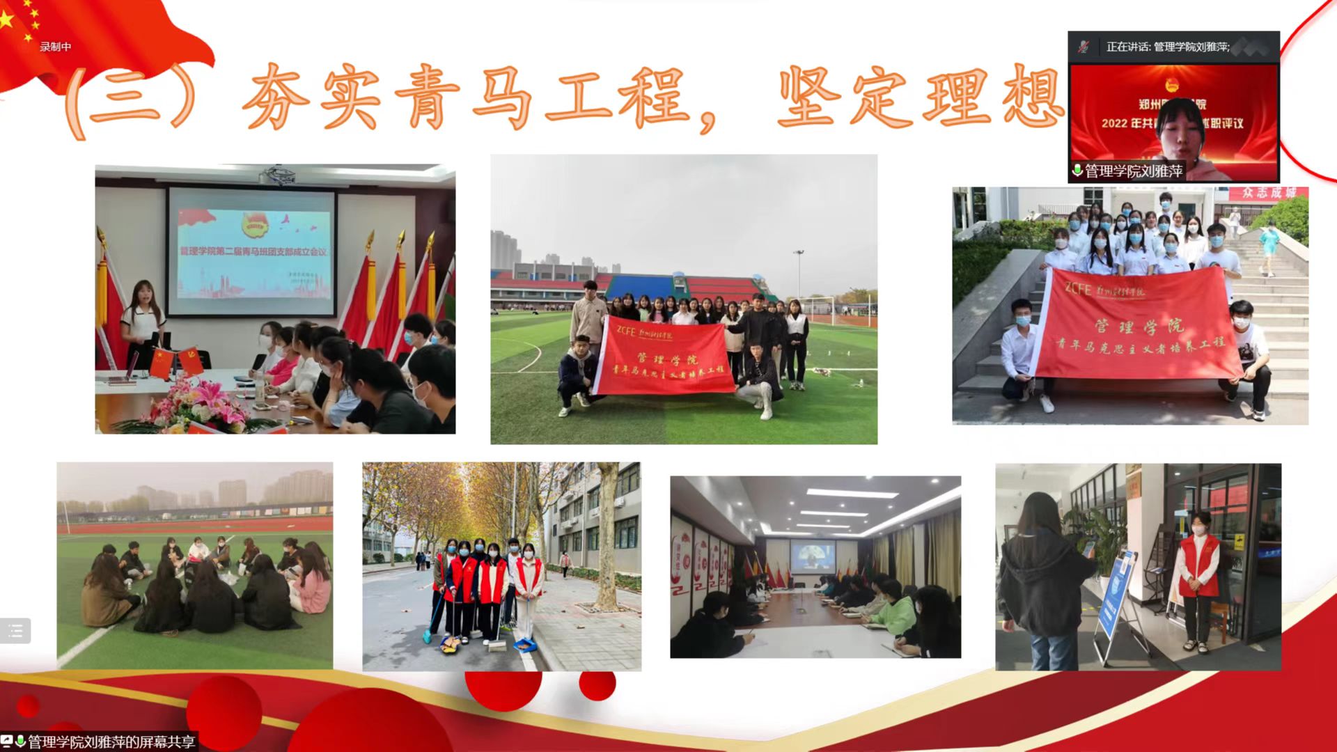 为贯彻落实团中央《关于印发<基层团组织书记述职评议考核暂行办法>的通知》文件精神和全面从严治团工作要求,全面总结beat365共青团组织2022年工作开展情况,推进共青团改革走向深入,12月1日,我校团委采用线上会议方式组织召开2022年共青团工作述职评议会议。有关校领导,校团委相关负责人,各二级学院团总支书记及校团委全体老师参加本次会议。