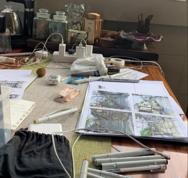 一份份荣誉的背后,是无数张改了又改的图纸。创作的过程并不是一帆风顺的,当内心焦虑或者缺乏灵感的时候,刘逸凡就会看看学界大师的作品或者放空自己,听听音乐,找辅导员谈谈心,在校园里面走走,他说:“参加比赛从未想过放弃,既然做了就要坚持下去,并把它做得越来越好”。