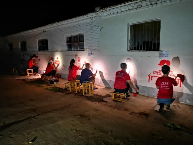 刘逸凡加入“乡村筑梦家”志愿服务团绘制墙绘