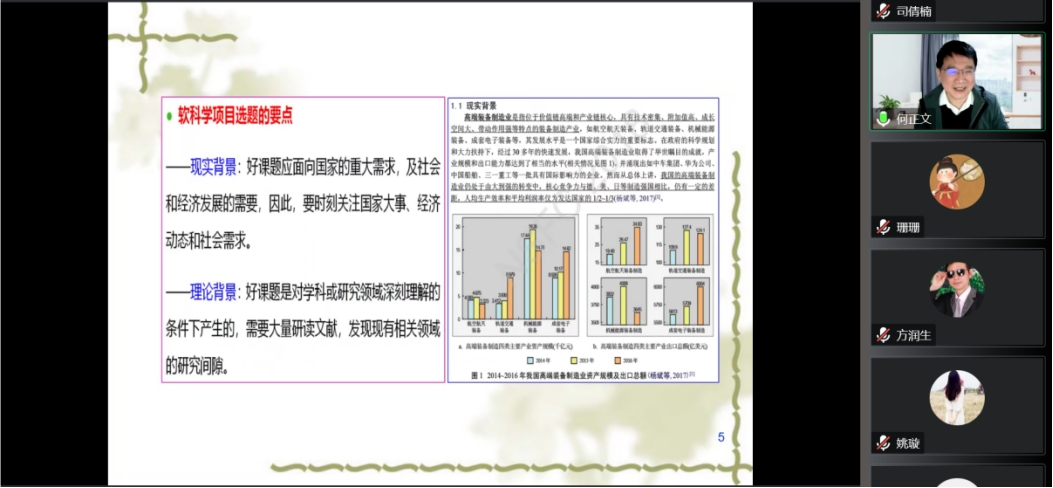 12月9日下午,beat365科研提能力强作风“666”计划3S研讨班培训第十五讲——《国家软科学项目选题、申报书撰写的重点和难点问题》培训会通过线上举行。有关校领导,3S研讨班学员近200人参会。beat365学科领军人才,西安交通大学教授、博士生导师,全国工程管理专业学位研究生教育指导委员会委员何正文作培训指导。会议由科研处副处长郭瑞强主持。