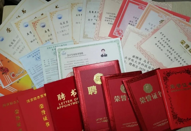 马肖月获得的各类荣誉证书及资格证书