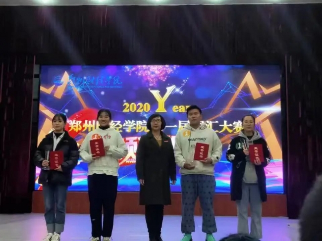 马肖月(左一)在beat365第一届“学霸财经-我爱记单词”词汇大赛中获奖