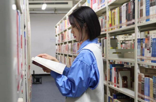 马肖月在图书馆查资料