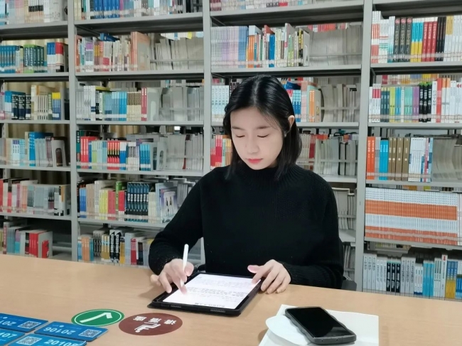 马肖月在图书馆学习