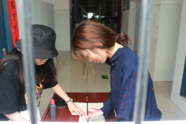 马肖月(右一)拍摄《漫漫长路》作品现场