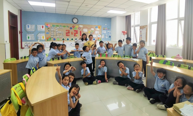 刘士琪(右四)在教育学院教育见习中荣获“优秀见习生”