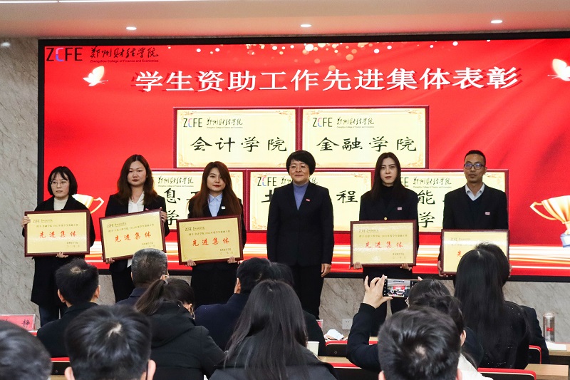 副校长陈静为“2021-2022学年学生资助工作单位先进集体”颁奖