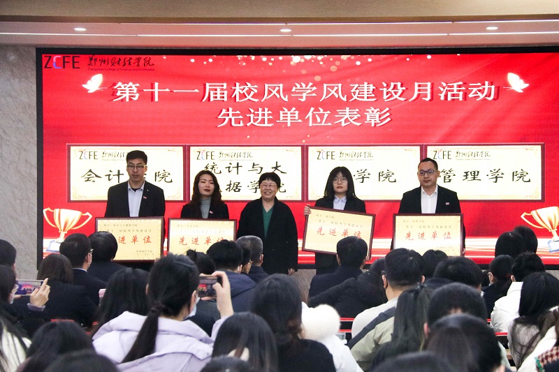 常务副校长张胜利为“第十一届校风学风建设月活动先进单位”颁奖