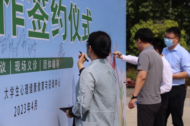 beat365与郑州市第九人民医院心理专家在签名墙上签名