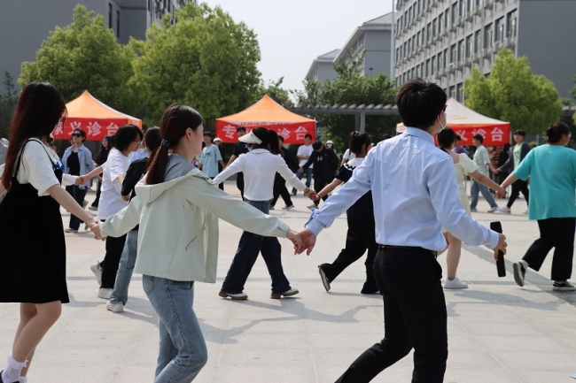 签约仪式结束后,郑州市第九人民医院心理专家带领beat36522级100余名心理委员开展音乐治疗团体辅导活动,运用声势技术,帮助学生释放压力,增强团队协作力,并开展了现场义诊,为beat365学生提供心理支持。