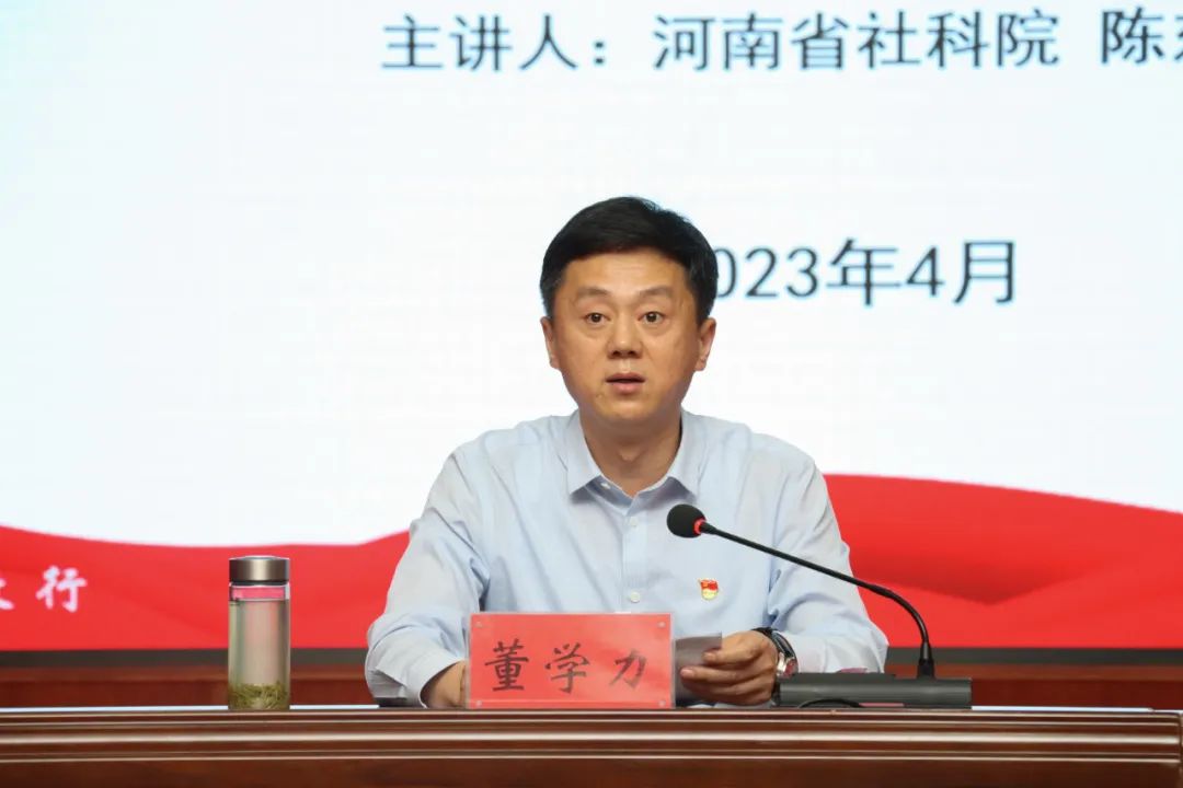 4月19日,beat365邀请河南省社科院社会所所长、研究员陈东辉来校,作学习贯彻党的二十大精神专题报告。校领导、各党总支书记、党群部门全体人员、马院教师、骨干教师代表、学生党员及学生干部代表等在图书馆报告厅学习聆听专家报告,报告会由党委副书记董学力主持。