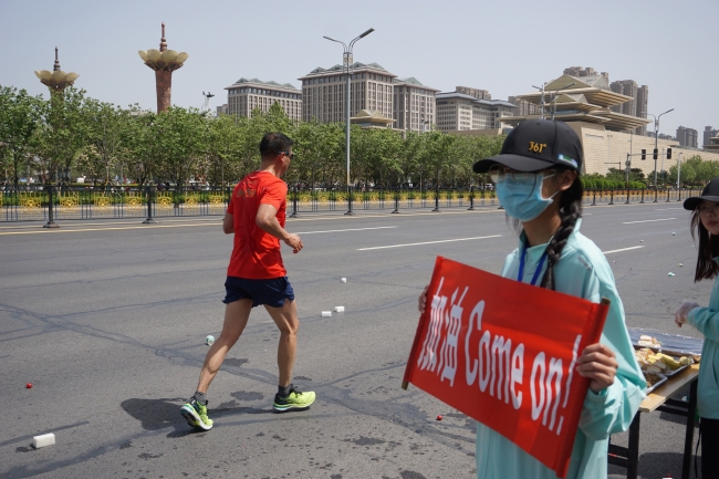 比赛期间,志愿者们始终坚守阵地,提供物资分装与发放、引导分流、氛围营造和站点补给等服务,为奔跑中的参赛者们保驾护航。