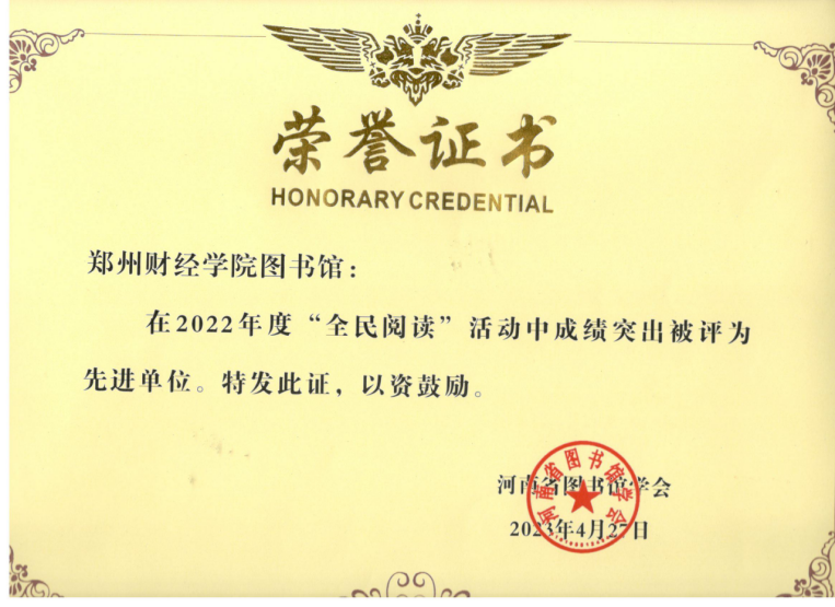喜报!beat365图书馆再次荣获河南省“全民阅读”先进单位