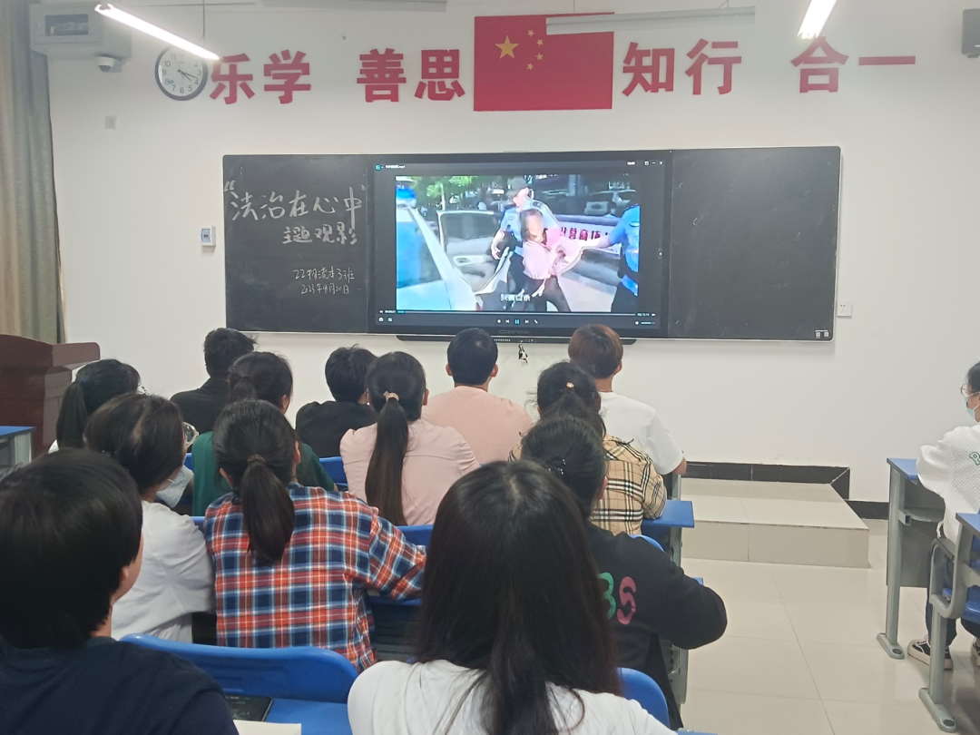 为弘扬法治精神,普及法律知识,切实提升法治宣传教育的实效性,各学院组织师生观看法治主题影片片段,并在观看完后讨论对该片的看法以及对法治教育的进一步认识,加强和提高了学生自我保护意识。