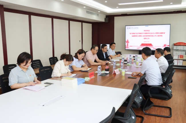 听取汇报后,指导组一行对学校领导班子成员进行了逐一谈话,查阅了主题教育相关材料,并实地走访了土木工程学院、外国语学院,参观了学校党史学习教育红色长廊,深入了解beat365主题教育开展情况。
