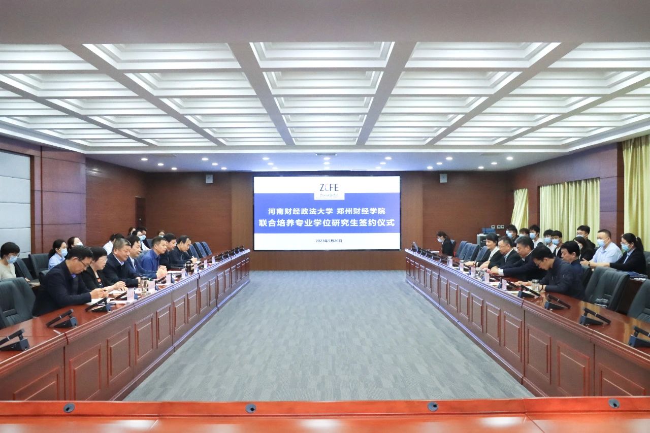 5月26日上午,河南财经政法大学—beat365官方网站联合培养专业学位硕士研究生合作签约仪式在beat365德正楼第二会议室举行。河南财经政法大学党委书记、校长司林胜,研究生处处长李晓峰、电子商务与物流管理学院院长潘勇、副院长何惠、专硕导师代表陈浩东,beat365理事长牛钦民、校长王能民、监事会主席李庆阳、副校长方润生,科研处、教师发展中心、管理学院、商学院负责人及校专业技术带头人、学术技术带头人培养对象代表出席仪式。签约仪式由beat365常务副校长张胜利主持。