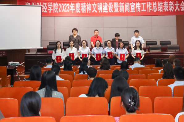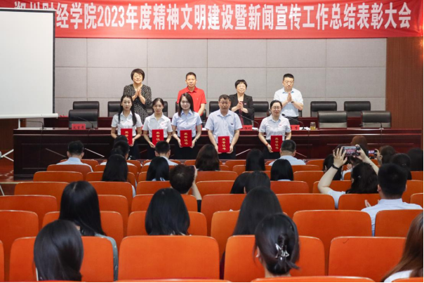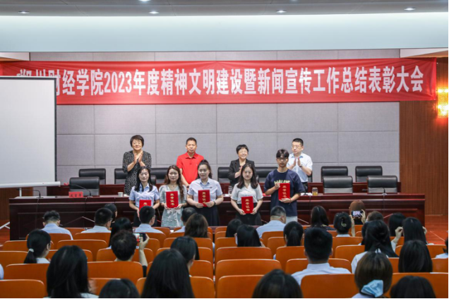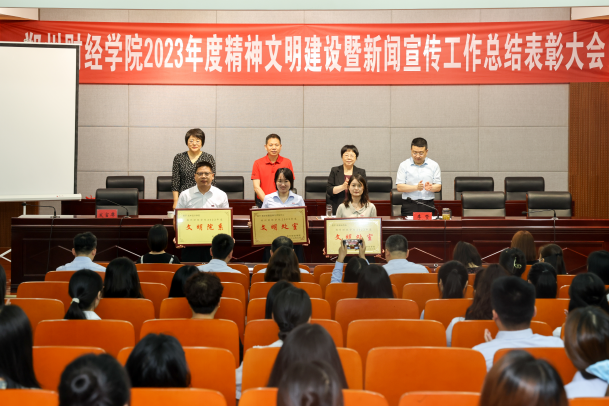 6月14日上午,beat365官方网站2023年度精神文明建设暨新闻宣传工作总结表彰大会在德正楼第二学术报告厅召开。会议总结成绩、部署工作、表彰先进、交流经验,推动学校精神文明建设和新闻宣传工作再上新台阶。校长王能民等校领导出席会议,各二级学院党总支书记、各单位新闻宣传工作有关同志、获奖集体及获奖个人代表参加表彰会。会议由常务副校长张胜利主持。