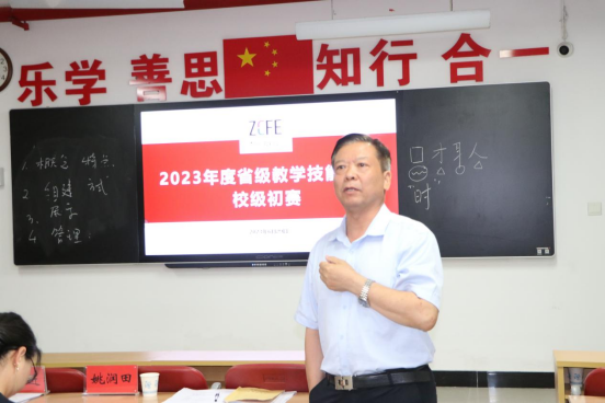 校级初赛共设文科、经管科、工科、理科、思政5个科目,分为3个赛场同时进行。本次竞赛由教学设计、教学展示两部分组成,教学展示采取“课堂教学+教学阐释”的形式。