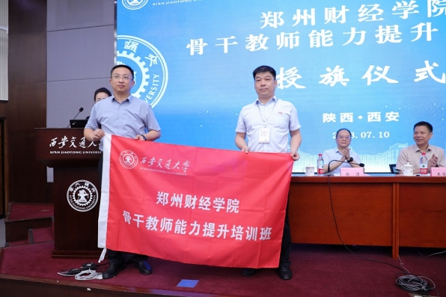 随后,双方举行授旗仪式。西安交通大学继续教育管理处处长高彦为beat365官方网站骨干教师能力提升培训班授旗。