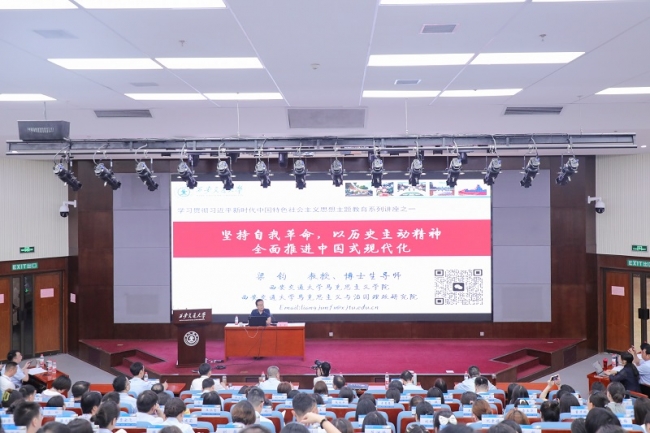 开班仪式结束后,西安交通大学马克思主义学院教授、博士生导师梁钧以《坚持自我革命,以历史主动精神全面推进中国式现代化》为题,为培训班全体学员作首场主题讲座。