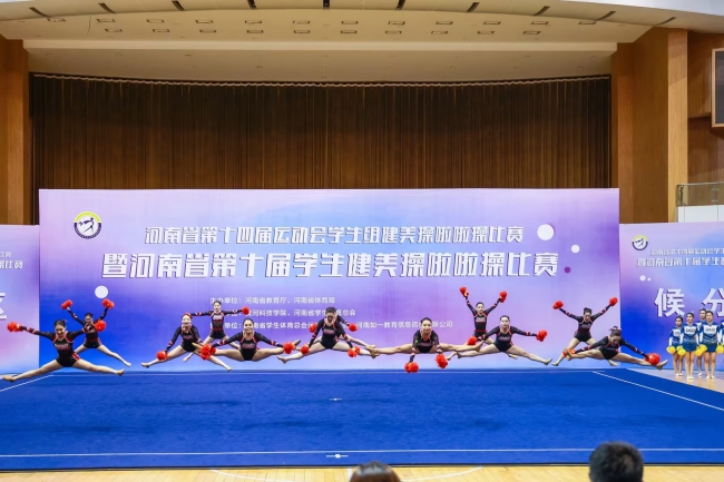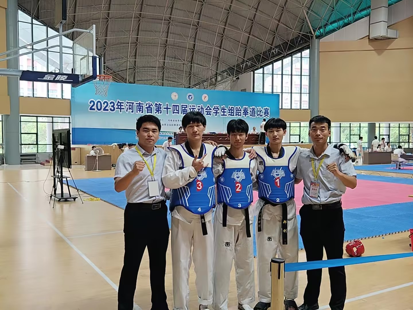 近日,我校校队参加河南省第十四届运动会学生组系列赛事,在武术、健美操和啦啦操、排舞、跆拳道等项目竞赛中奋力拼搏,并取得优异成绩。