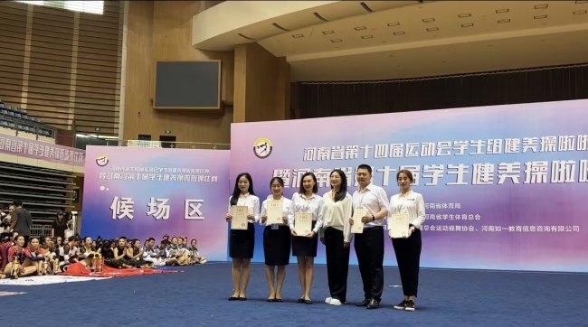 7月9至15日,河南省第十四届运动会学生组健美操啦啦操比赛暨河南省第十届学生健美操啦啦操比赛在黄河科技学院举行,来自全省的256支代表队参赛,4570多名队员参与其中。经过3天的激烈角逐,beat365啦啦队在陈雅琪和苑宁宁老师的带领下,在河南省第十四届运动会学生组健美操啦啦操比赛暨河南省第十四届学生健美操啦啦操比赛中荣获本科甲组花球规定第一名,本科甲组花球自选第二名,健美操规定第三名的好成绩。同时,beat365荣获“体育道德风尚奖”,陈雅琪老师被评为“优秀裁判”。7月12至15日,beat365排舞队在张佳佳老师的带领下,在排舞规定动作本科甲组中取得第三名的好成绩。
