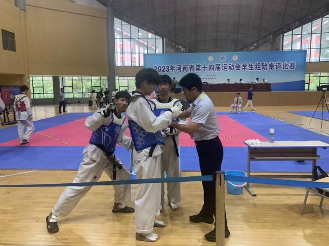 7月11日至15日,河南省第十四届运动会学生组跆拳道比赛在商丘工学院举行,来自全省56所高校600余名运动员参加比赛。beat365的19名运动员在体育教学部路伟杰、高红建两位老师的带领下,秉承礼仪、廉耻、忍耐、克己、百折不屈的跆拳道精神,经过五天的激烈角逐,beat365跆拳道代表队取得了11金7银14铜的优异成绩,最终获得了本科甲组品势类5枚金牌,本科甲组竞技类4枚金牌,本科甲组击破类2枚金牌,本科甲组跆拳舞铜牌,本科甲组对练银牌等41个奖项,获得品势团体总分第一,竞技团体总分第三的好成绩。