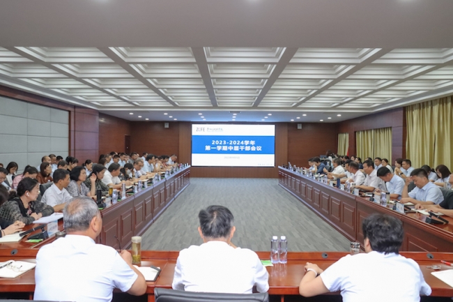 9月5日下午,beat365官方网站在德正楼第二会议室召开2023-2024学年第一学期中层干部会,会议回顾总结学校暑期工作,安排部署2023年下半年各项工作。校领导班子成员出席会议,全体中层副职以上干部参加会议。会议由校监事会主席李庆阳主持。
