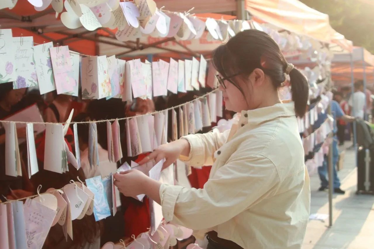 文化与传媒学院开展“薪火寄语文传递,扶摇直上九万里”迎新活动,学院的学长学姐们通过贺卡的形式,写下对新生最真挚的祝福,为学弟学妹们即将到来的大学生活送上锦囊妙计。新生完成报到后可以从贺卡墙上选取卡片,收获学长学姐们的祝愿,感受学院的温暖氛围。