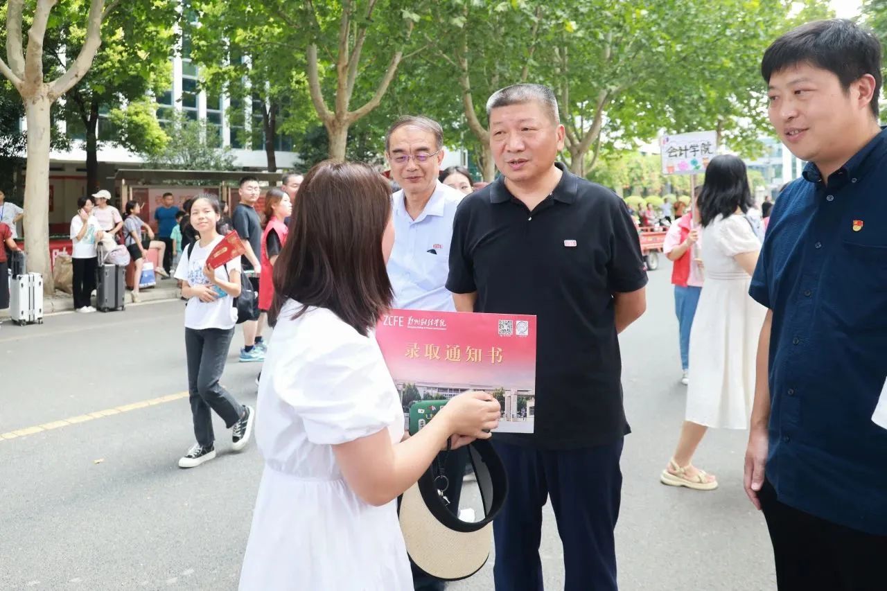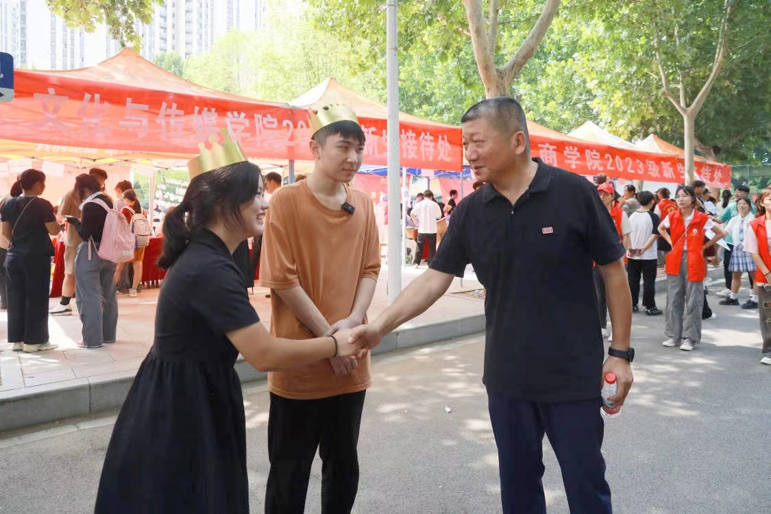 新生报到期间,学校领导班子成员深入迎新一线指导迎新工作,亲切慰问新生及家长并对参与迎新工作的工作人员们送上关怀。一声声问候,一句句嘱托,使迎新教职工备受鼓舞表示要全力以赴,力争为新生提供更便捷、更温馨、更全面的服务,也让2023级新生进入校园的第一时间感受到来自学校的真切关怀。