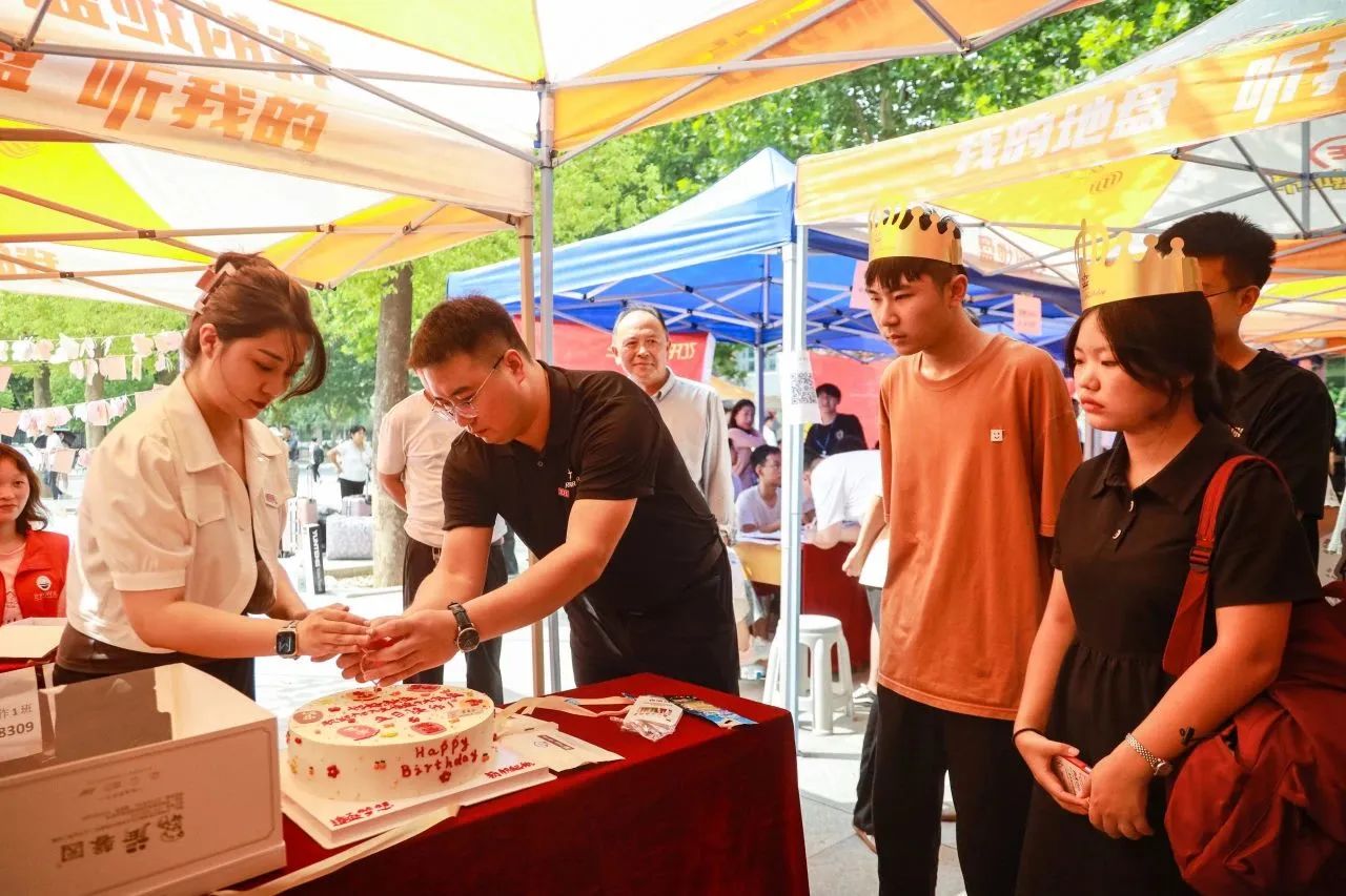 学院辅导员为报到当天生日的两名同学准备了生日蛋糕,在场师生和志愿者们共同为新生唱生日祝福歌,让新加入到文传这个大家庭的学生感受到家的温暖,使同学们迅速破冰,更好融入到大学生活中来。