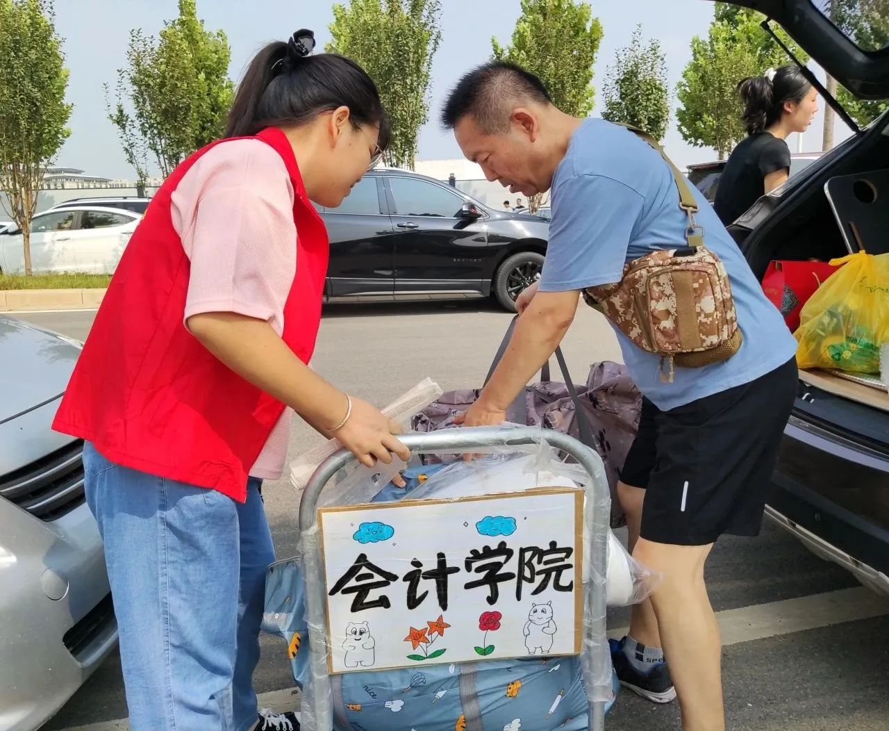 学院领导和辅导员们对新生以及家长的到来表示热烈欢迎,志愿者们热情地接待2023级小萌新们和陪同的家长,为新生指引路线、帮助其报名登记、搬运行李;耐心地为新生和家长答疑解惑,叮嘱入校后的注意事宜,引领新生办理宿舍入住,实现各环节无缝对接。按下快门,为新生拍下他们与郑财的第一张照片,留下难忘的青春印记。