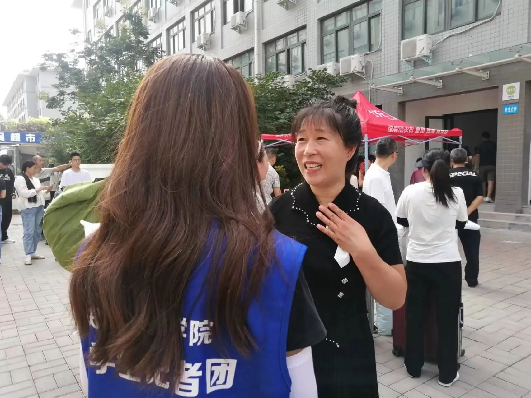 文化与传媒学院张露一家来自河南许昌。当问到对学校的初印象时,张露同学的妈妈表示,一进学校门口就看见了每个学院的帐篷,不仅有志愿者指路带领,还有三轮车运送行李十分便捷,感觉心里暖暖的。张露妈妈说这是第一次来学校,所以她们提前做了路线规划,在来学校前也帮助孩子收拾了行李,叮嘱孩子在学校如何跟老师同学相处。她希望孩子在新的学校还保持像高中一样积极汲取知识的态度,积极参加学校的活动,开阔视野,丰富自己的大学生活。