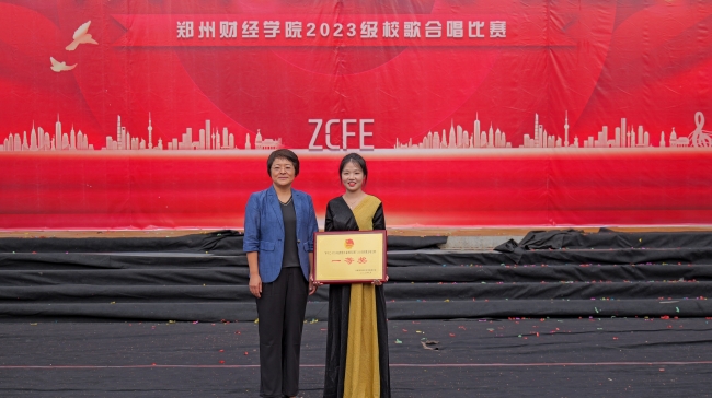 公共艺术教学部主任王艳霞为三等奖获奖学院颁奖
