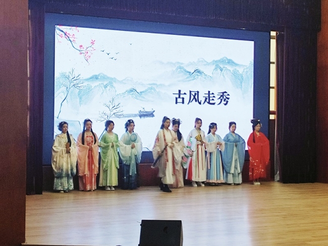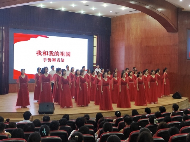 仪式上,汉服社和会计学院分别带来“古风走秀”和“《我和我的祖国》手势舞”,彰显当代大学生向阳而生、奋发有为的使命担当和精神风采,传递青春正能量。