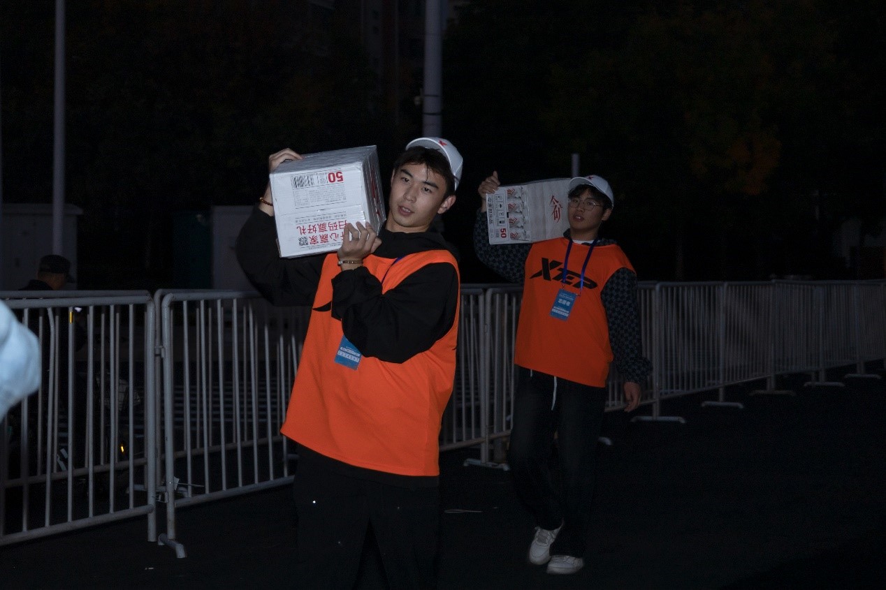 比赛当天,beat365志愿者们身着工作服,佩戴工作证于凌晨四点集合完毕,乘坐大巴分别到达负责的志愿站点,认真清点各站点物资,根据组委会要求,志愿者们按照具体分工各司其职,迅速进入工作状态,有条不紊地开展摆放置物桌、规范物品位置、搭建垃圾区域等前期准备工作,快速完成了沿途服务点的物资分配工作,全体志愿者全面进入工作状态,为正式比赛做好充足准备。