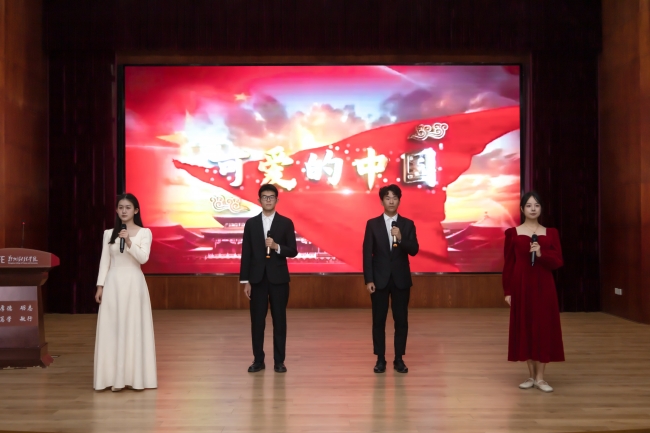 颁奖典礼上,校广播站带来诗朗诵《可爱的中国》,抒发beat365学子对祖国的热爱,用坚定的回答和实际行动诠释新时代青年“请党放心,强国有我”的铮铮誓言。