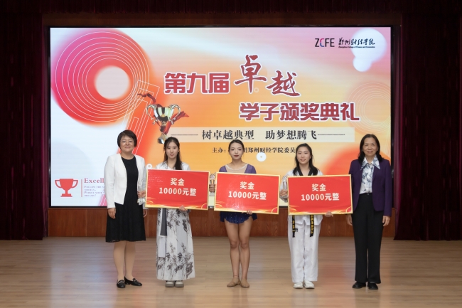 颁奖典礼上,郑财学子从志愿公益、专业学习、文艺特长、学生服务、技能竞赛、创新创业等不同角度进行风采展示,分享他们的成长故事,校领导为卓越学子和卓越团队依次颁发10000元梦想基金和奖杯。一个个感人至深的故事展现了郑财学子成长成才的奋斗历程,他们用坚定的信念和顽强的拼搏诠释了艰苦奋斗、自强不息的精神,用实际行动践行着“厚德 砺志 笃学 敏行”的校训。