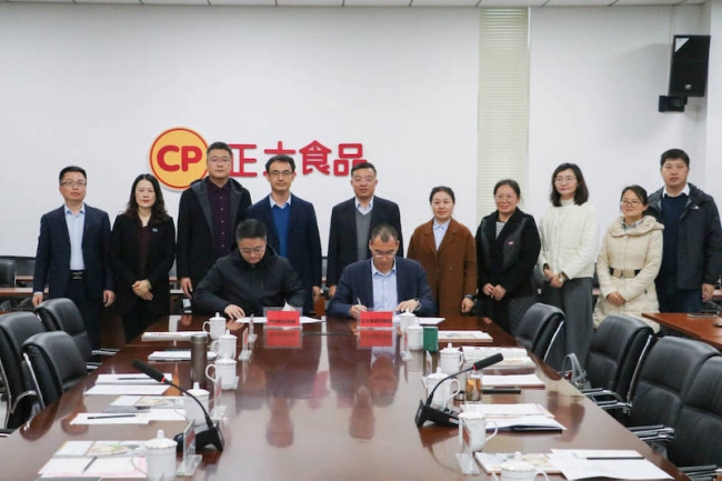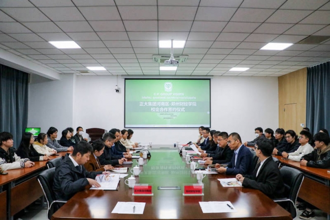 为进一步深化产教融合和科教融汇,搭建双向良性的交流平台,探索基于人才培养的产教融合创新体系,拓宽学生实习和就业渠道,11月10日,beat365官方网站与正大集团河南区签署产学研战略合作协议,签约仪式在正大食品(开封)有限公司举行。正大集团河南区饲料事业资深总裁王停战、肉鸡事业总裁丁全亮、人力总监霍春阳,beat365监事会副主席张彪出席仪式,就业指导服务中心、教务处、科研处、相关学院负责人及师生代表参加仪式。