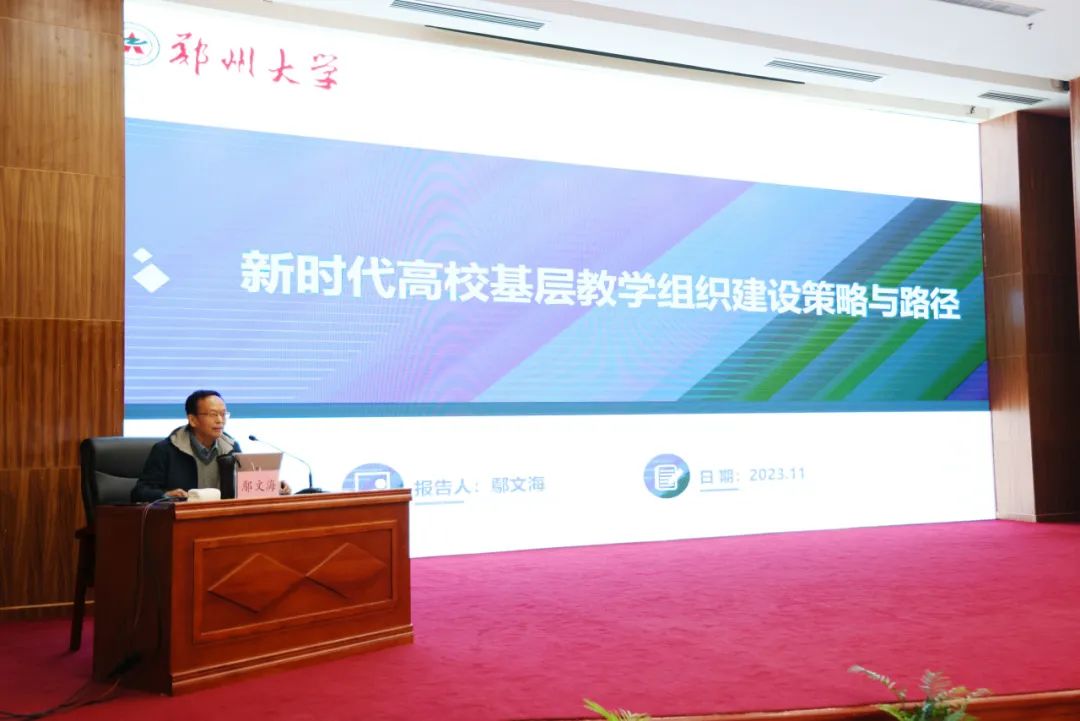 下午,郑州大学鄢文海教授以《新时代高校基层教学组织建设策略与路径》为题作报告。他围绕新时代本科教育的特征和基层教学组织作用、基层教学组织内涵的变迁与创新、高校基层教学组织面临的问题和挑战、高校基层教学组织未来建设的工作重点、提升高校基层教学组织建设的策略与路径、基层教学组织的考核评价六个方面进行了详细讲解。鄢教授的报告主题鲜明、内容详实、逻辑清晰,既有理论高度,又有实践深度,对推进beat365基层教学组织建设与管理工作具有重要作用。