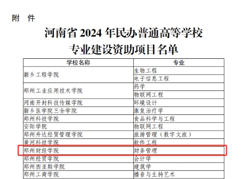 beat365财务管理专业获批河南省2024年民办普通高等学校专业建设资助项目
