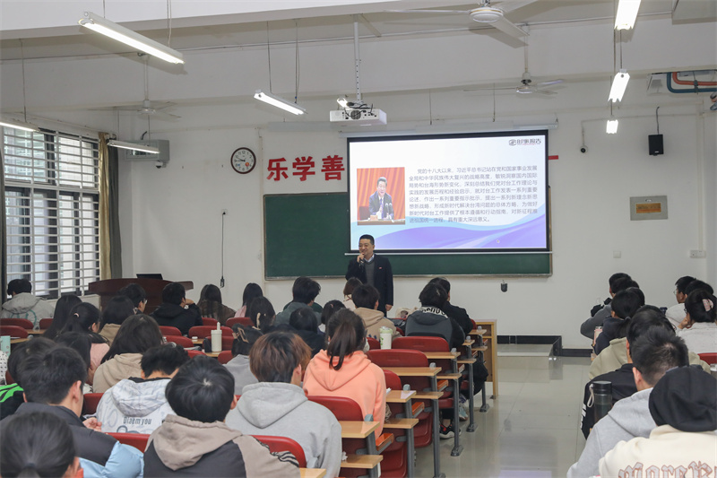 为深入学习贯彻习近平新时代中国特色社会主义思想和党的二十大精神,坚持用党的创新理论铸魂育人,切实提升思想政治理论课的教学质量和课堂实效。11月22日上午,校纪委书记李赞深入思政课堂一线,在育爱楼209教室为2022级智能工程与创意设计本科1、2班学生讲授了一堂生动的形势与政策课。