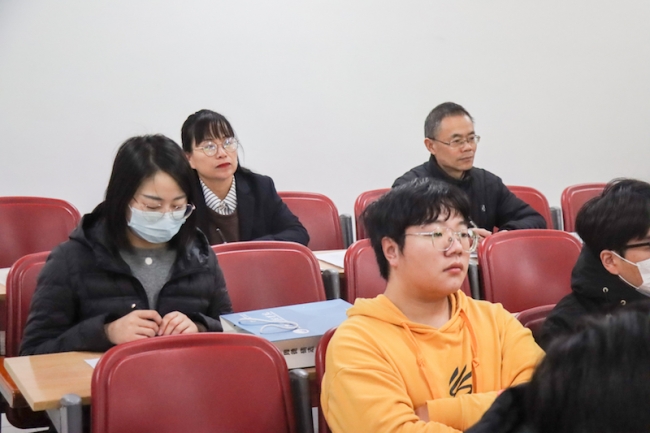 调研组以“随机抽取”方式听取了李亚翀老师讲授的《习近平新时代中国特色社会主义思想概论》和李艳艳老师讲授的《马克思主义基本原理》两门课程。调研组专家认为,两位老师备课充分,讲课富有激情,课堂教学重点突出,积极与学生互动,课堂氛围活跃,能够做到理论联系实际,贴近学生,课堂教学有温度、接地气。调研组专家还就教学设计、教学方法、师生互动、多媒体教学手段的应用等进行深入交流。随后,调研组专家对部分思政课教师、学生进行随机访谈,深入了解学校思政课课程设置、教学模式、教学改革等情况。