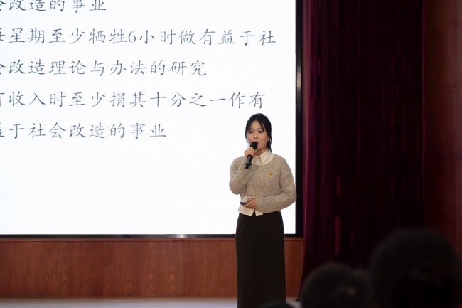 “活力社团”大赛学生代表郭姗育进行汇报展示