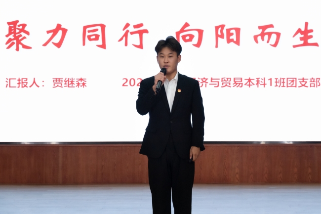“活力团支部”大赛学生代表贾继森进行汇报展示