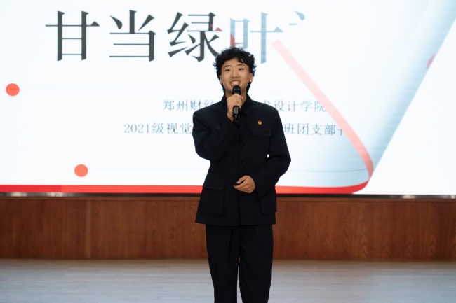 “校园魅力团支书”学生代表焦翘楚进行汇报展示