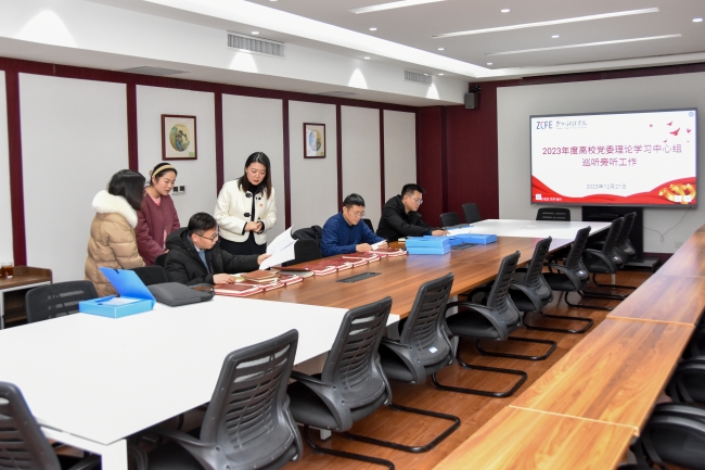 校党委副书记董学力汇报了2023年学校党委理论学习中心组学习开展情况。他从健全体制机制,规范学习管理;抓住关键少数,发挥头雁效应;突出主题主线,深钻细研长本领;坚持学以致用,推动成果转化四个方面,详细介绍了学校党委理论学习中心组开展学习的主要做法和特色亮点。他表示,下一步,学校将以此次巡听旁听督导为契机,持续推动中心组学习工作提质增效,为学校高质量发展蓄势赋能。