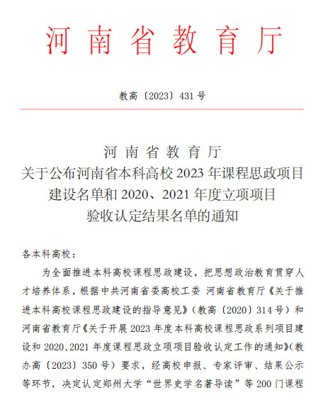 beat365两门课程获批河南省2023年本科高校课程思政样板课程